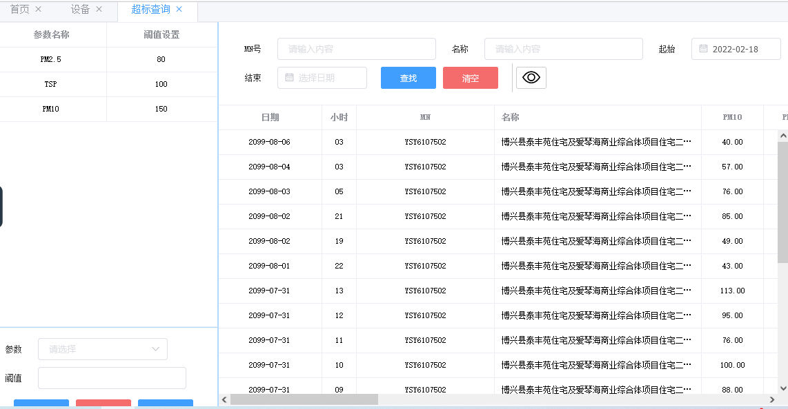 6.濃度報警:能夠對揚塵監測設備數據濃度等指標進行實時監測,對排放超標數據進行實時報警。