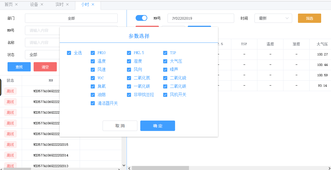 4.數據平臺:本司提供免費云平臺,并可協助客戶對接政府或客戶自建平臺。通過數據平臺可以實時了解整個轄區范圍內所有在建項目揚塵在線監測設備的運行情況,可以查詢、統計不同階段的揚塵監測情況繪制實時曲線。